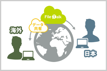 海外拠点や、海外のお客様とのファイル共有も手軽に行えます。